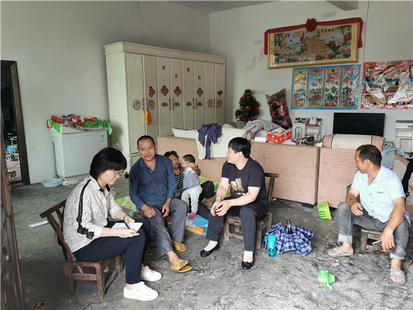 村干部還介紹說,坐著做作業(yè)的小女孩是她有聽力障礙的孫女,已經(jīng)送到了特殊學校接受正常教育,現(xiàn)在放暑假回家了。聽到這里,我覺得阿婆家真的很開明,農村很少有舍得花錢送孩子去特殊學校讀書的家庭。聊天期間阿婆的話不多,沒有更多的表達,但臉上一直洋溢著幸福滿足的笑容,語言也很樸實,但寥寥數(shù)語流露著對國家政策和扶貧隊員的感激。走的時候阿婆從廚房里裝了一袋葉子粑粑出來,遞給扶貧隊員,說自己家里做的讓我們嘗嘗。